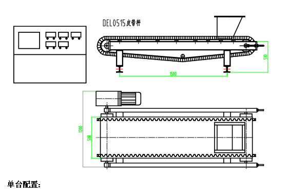 含減速機(jī)(章臣)、電機(jī)、裙邊皮帶、整形料斗(T4)、清掃器(皮帶內(nèi)外清掃器)、皮帶糾偏裝置等 |
